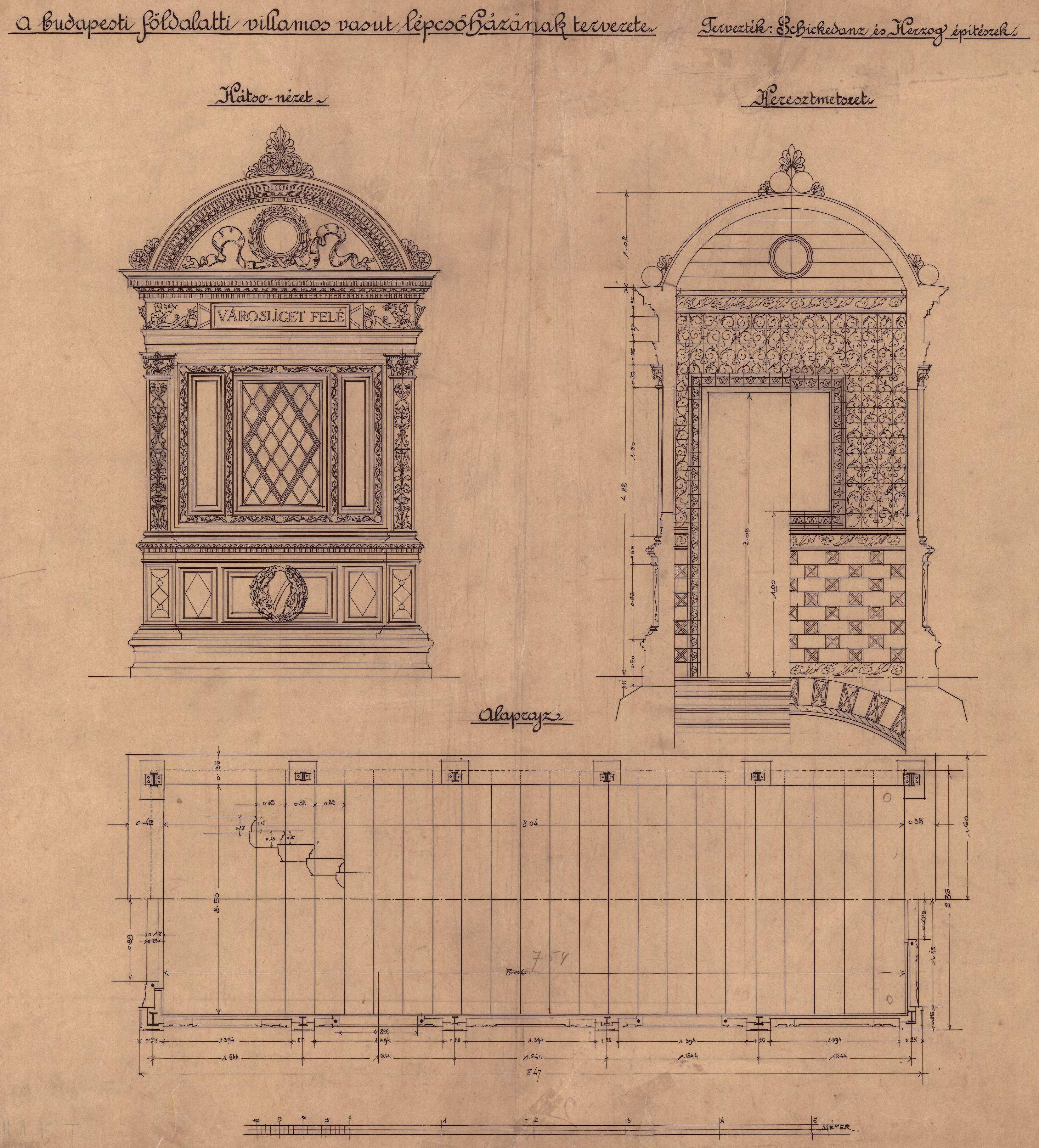A budapesti földalatti villamosvasut lépcsőházának tervezete